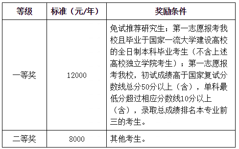 主要用于獎(jiǎng)勵(lì)學(xué)業(yè)成績(jī)特別優(yōu)秀、科學(xué)研究成果顯著、社會(huì)公益活動(dòng)表現(xiàn)突出、綜合素質(zhì)優(yōu)異的全脫產(chǎn)學(xué)習(xí)全日制研究生。獎(jiǎng)勵(lì)標(biāo)準(zhǔn)為碩士研究生20000元/年。