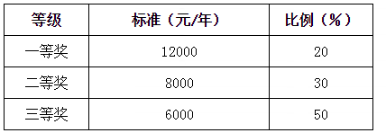 二、三年級(jí)學(xué)業(yè)獎(jiǎng)學(xué)金主要根據(jù)上一學(xué)年的學(xué)業(yè)成績(jī)、科研能力、綜合素質(zhì)等情況的表現(xiàn)來評(píng)定。獎(jiǎng)勵(lì)標(biāo)準(zhǔn)與評(píng)定比例如下: