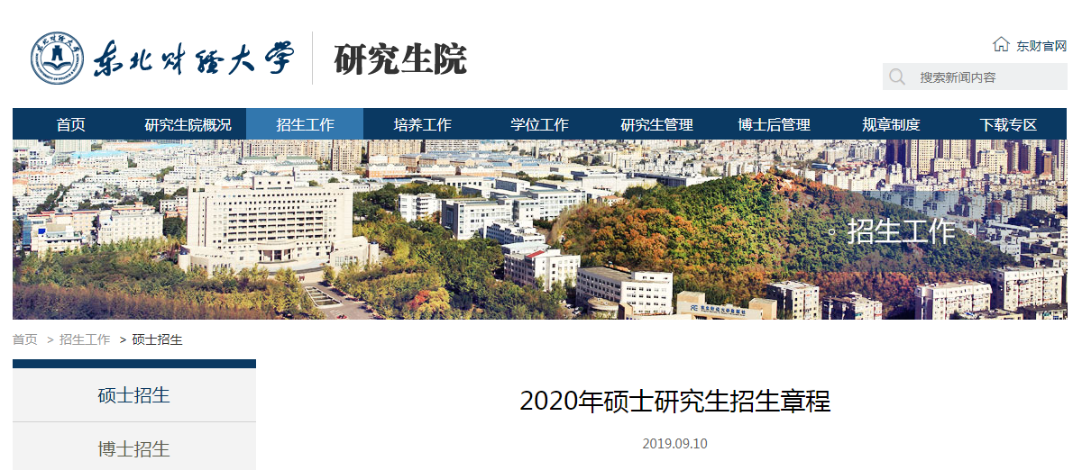 2020年碩士研究生招生簡章陸續已出,今天小編給大家整理的是“東北財經大學2020年碩士研究生招生章程”的相關內容,有報考意愿的小伙伴要注意下哦!