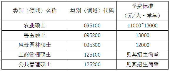 非全日制專業(yè)學位研究生,不同類別(領域)學費標準不同,工商管理碩士與公共管理碩士收費標準另見其招生簡章,其余專業(yè)(領域)收費標準見下表: