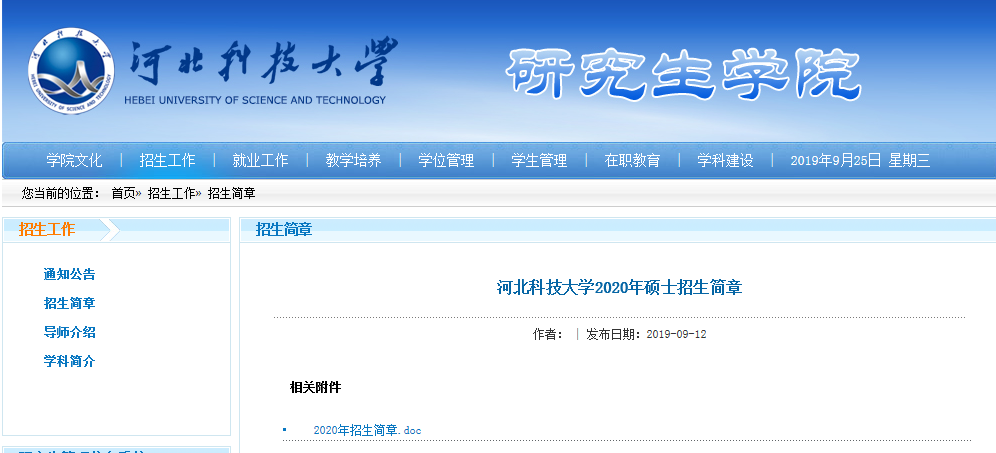 當(dāng)前位置: 招生簡(jiǎn)章 > 河北科技大學(xué)2020年碩士招生簡(jiǎn)章