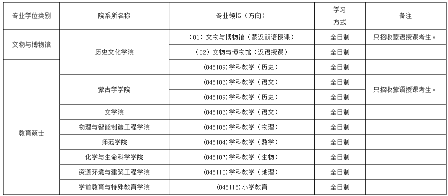專業碩士研究生的高等院校,培養文物保護、考古技術與應用、文化遺產保護、數字博物館與文化創意等方向,掌握一定實踐技能和具有現代文博理念的應用型、創新型蒙漢“雙語”語言表達能力的高層次專門人才。