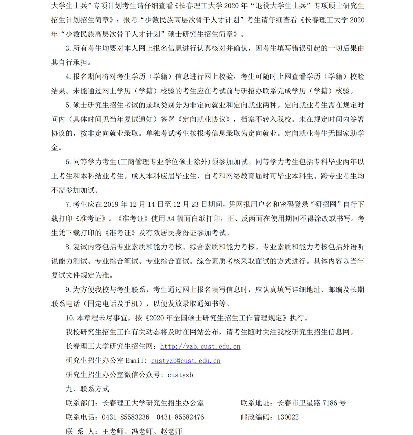 以上就是“長春理工大學2020年碩士研究生招生章程”的全部內容!祝您考研成功!