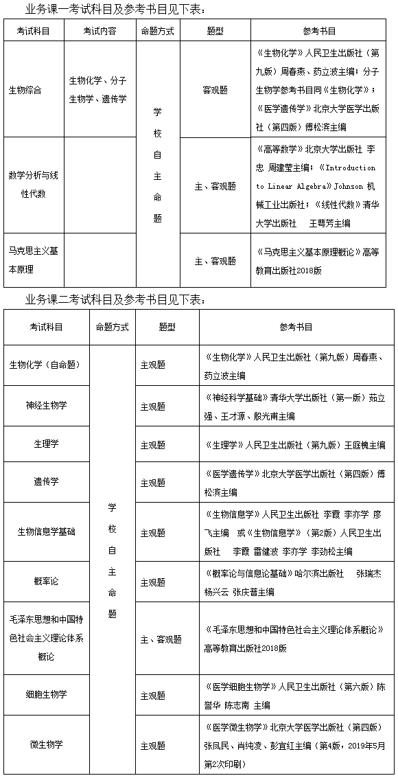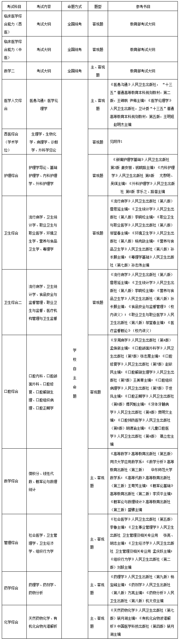 醫學門類專業基礎綜合考試科目及參考書目等見下表: