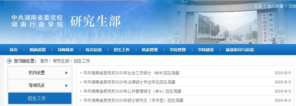 中共湖南省委黨校2020年碩士研究生招生簡章匯總