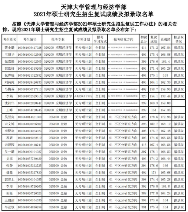 以下為天津大學(xué)2021年考研部分錄取名單: