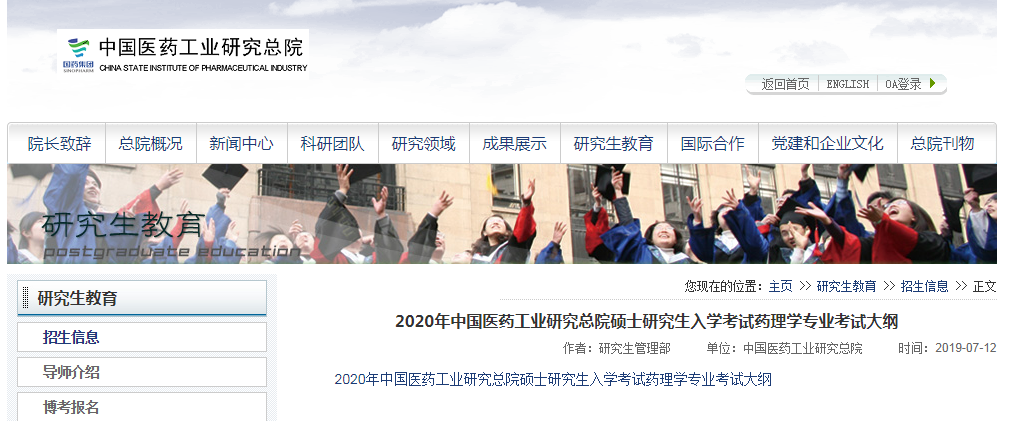 中國醫(yī)藥工業(yè)研究總院日前在官網(wǎng)發(fā)布了2020年碩士研究生考試大綱,今天小編整理了“2020年中國醫(yī)藥工業(yè)研究總院碩士研究生入學考試藥理學專業(yè)考試大綱”的相關(guān)內(nèi)容,希望能對有報考意愿的小伙伴有所幫助!