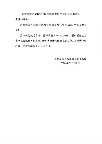 2021考研專業目錄:武漢科技大學機械自動化學院2021年碩士研究生招生專業目錄”的相關內容,希望對大家有所幫助!