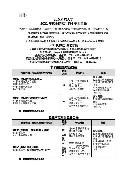 以上就是“2021考研專業目錄:武漢科技大學機械自動化學院2021年碩士研究生招生專業目錄”的全部內容!祝您考研成功!