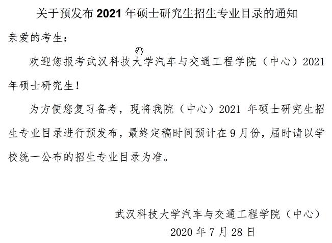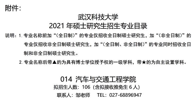 以上就是“2021考研專業目錄:武漢科技大學汽車與交通工程學院2021年碩士研究生招生專業目錄”的全部內容!祝您考研成功!