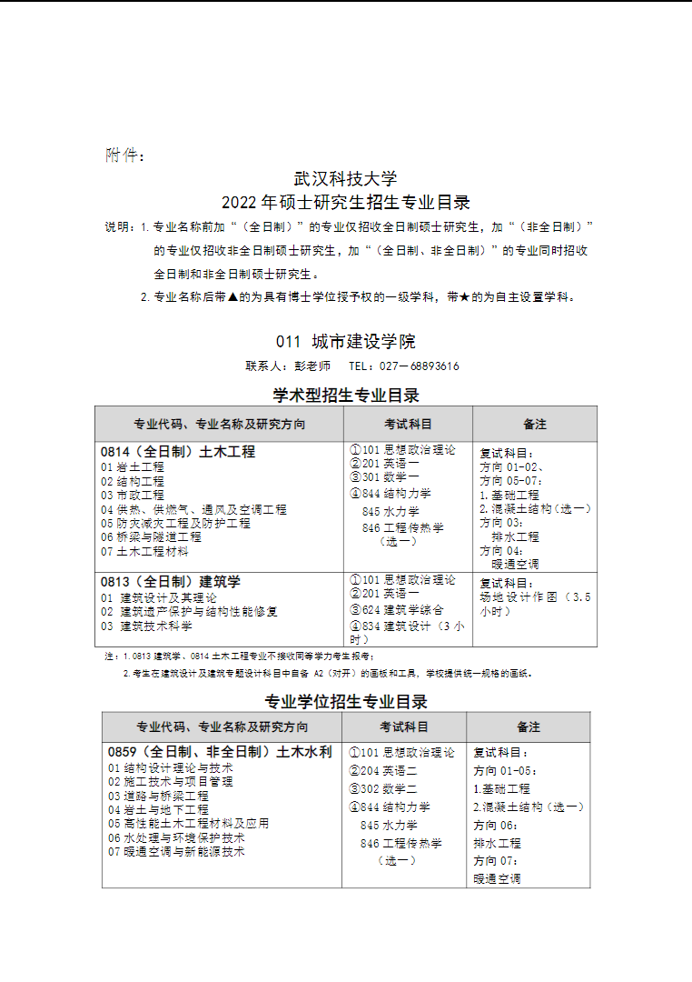 “2022考研專業目錄:武漢科技大學城市建設學院2022年碩士研究生招生專業目錄”的全部內容!祝您考研成功!更多