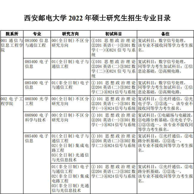 2022考研專業目錄:西安郵電大學2022年碩士研究生招生專業目錄