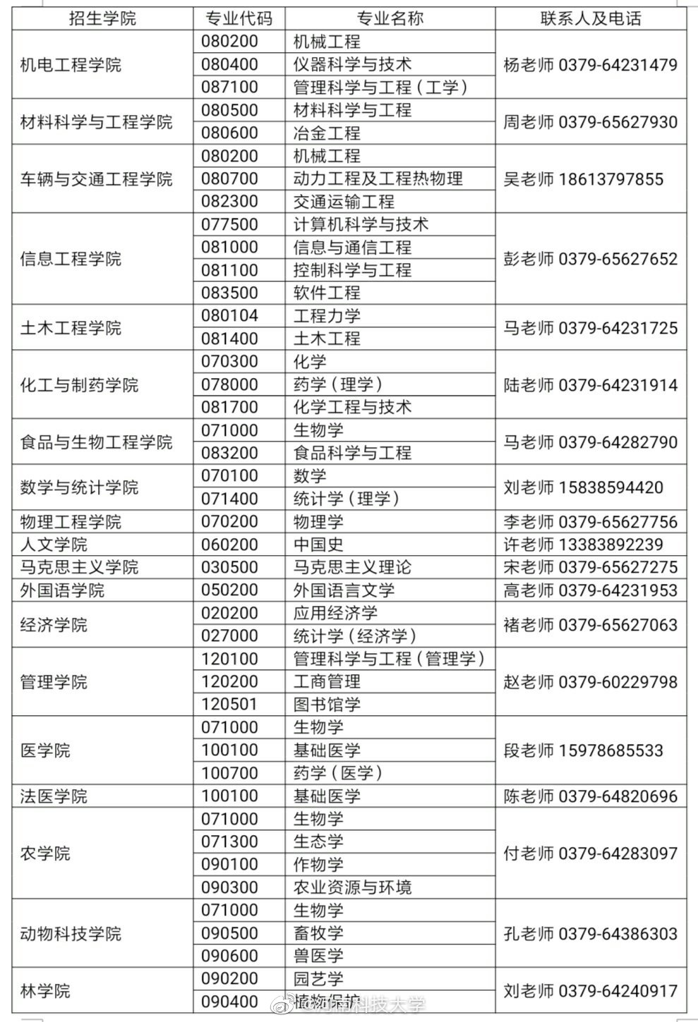 以上就是“河南科技大學(xué)2020年碩士研究生專業(yè)目錄”的全部內(nèi)容!