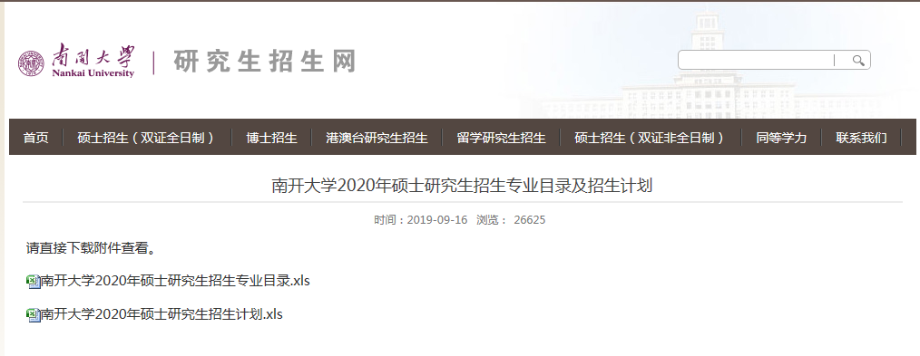 南開大學(xué)2020年碩士研究生招生專業(yè)目錄及招生計(jì)劃