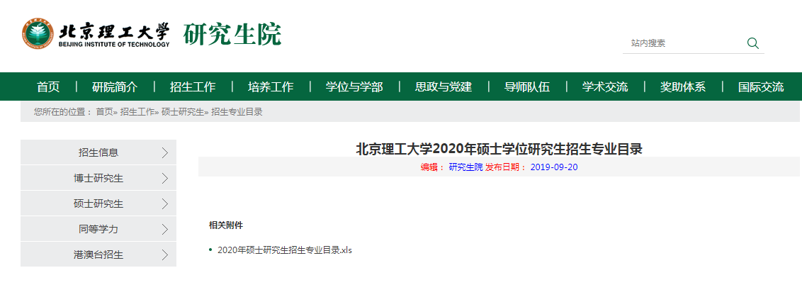 2020年碩士研究生招生專業目錄陸續已出,今天小編給大家整理的是“北京理工大學2020年碩士學位研究生招生專業目錄”的相關內容,有報考意愿的小伙伴要注意下哦!